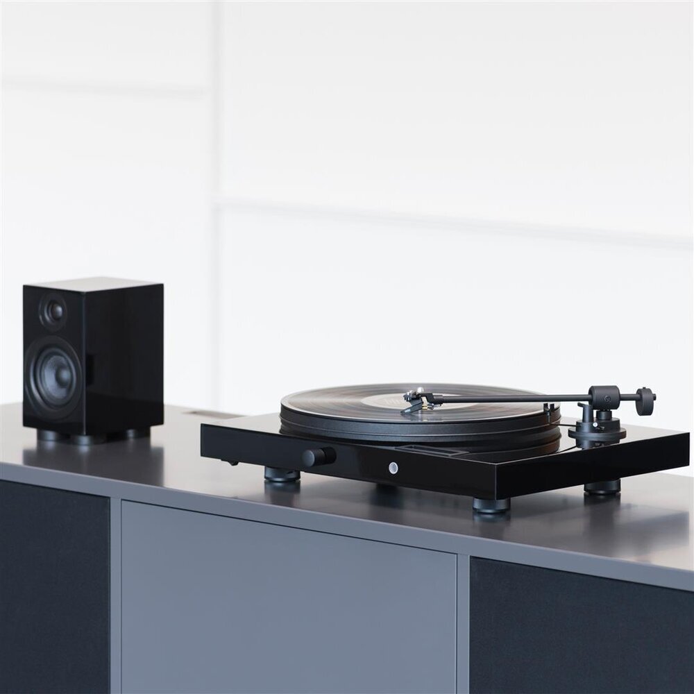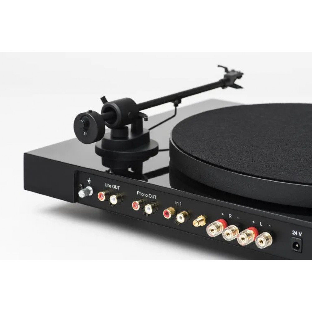 Цей стіл з пасиковим приводом забезпечує найшвидший можливий процес встановлення, оскільки він поставляється, попередньо налаштований з коробки, та забезпечує чудову якість звуку. Притискна сила та антискейтинг попередньо налаштовані для, попередньо встановленого, картриджа Ortofon OM 5E.