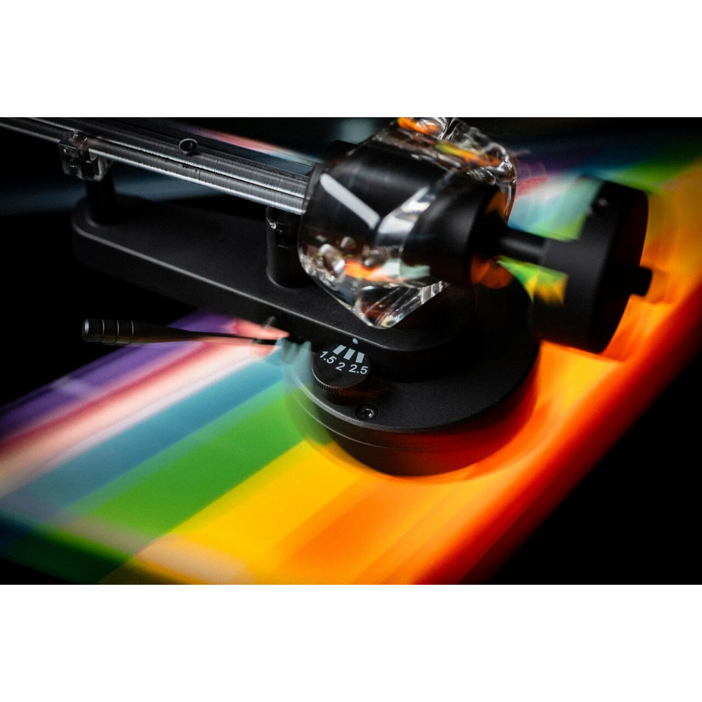 Тонарм із низьким резонансом і абсолютно новим дизайном - є, безумовно, однією з головних переваг цього програвача. Поєднання чорних алюмінієвих частин і акрилу привертає увагу. Спеціальна версія картриджу Pick it PRO Special Edition налаштована відповідно до всієї концепції та забезпечує багате звучання, яке ви очікуєте від програвача Dark Side Of The Moon. У поєднанні з райдужним світлодіодним підсвічуванням, програвач виглядає ще ефектніше під час прослуховування улюблених записів у темряві.